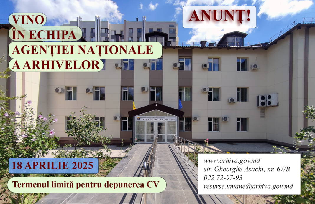 Agenția Națională a Arhivelor, anunță angajări de prestări servicii în vederea expertizării și ordonării documentelor instituțiilor care au valoare istorică pentru a fi selectate și transmise la păstrare permanentă de stat.