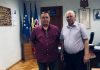 Excelenţa Sa Ambasadorul Extraordinar şi Plenipotenţiar al Republicii Kazahstan în Republica Moldova Almat Aidarbekov şi Aurelia Felea, doctor în istorie, responsabilă de realizarea expoziţiei de documente din patrimoniul arhivistic al Republicii Moldova.