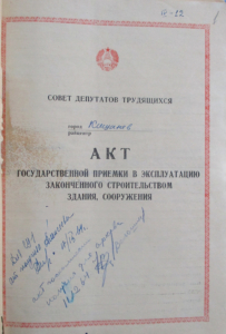 Încheierea lucrărilor de construcţie a fost consfinţătă oficial prin Actul de primire–predare a clădirii semnat la 22 august 1964 de membrii unei Comisii de Stat şi de reprezentanţi ai organizaţiilor de construcţii şi de proiectare.
